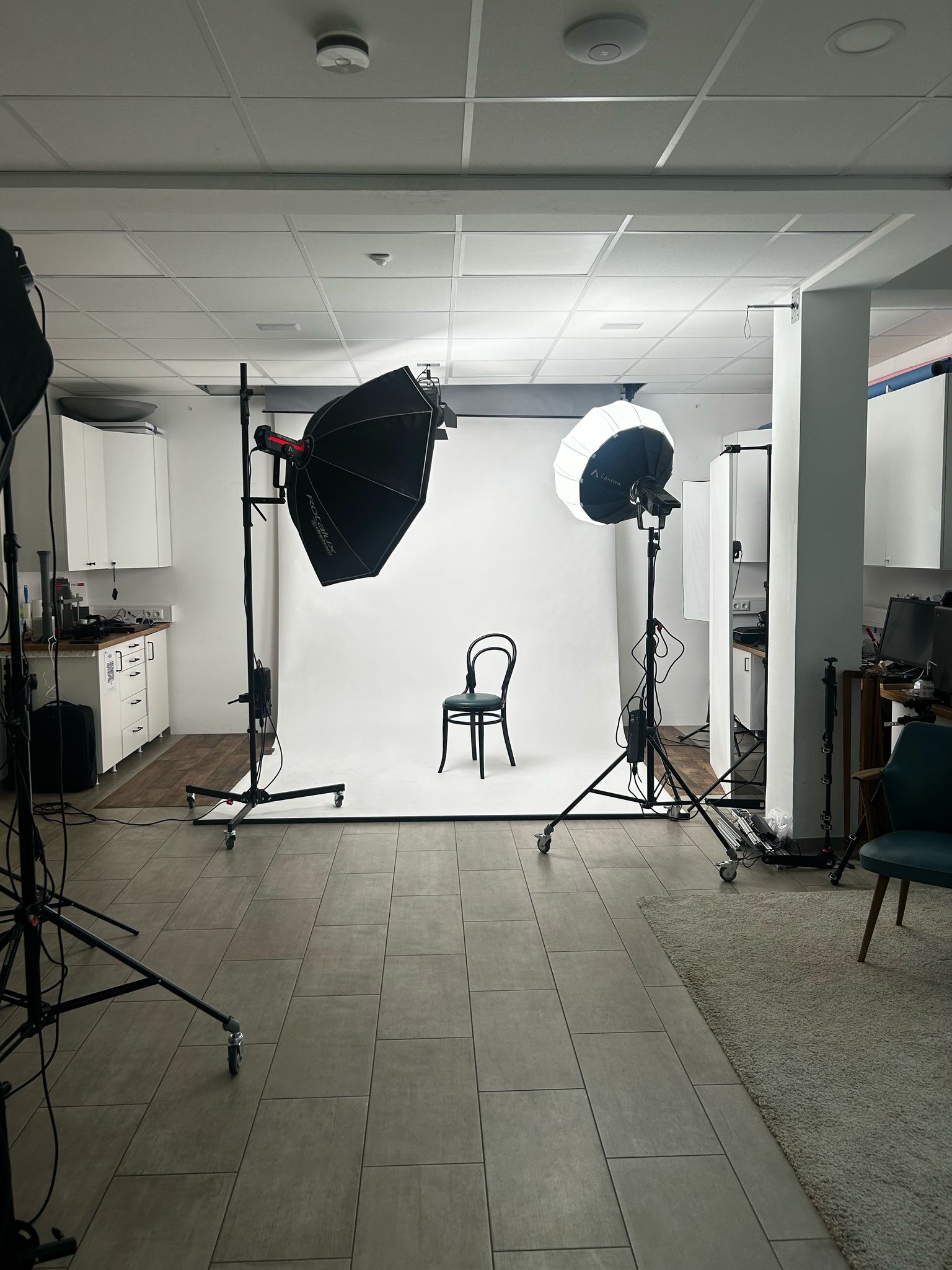 Der großzügige Studiobereich ist perfekt zum Fotografieren und bietet alle benötigten Blitzlichter für professionelle Aufnahmen. Egal, ob du Fotoshootings, Coachings, Workshops oder Meetings planst – unser Studio bietet das ideale Ambiente für deine kreativen Vorhaben.