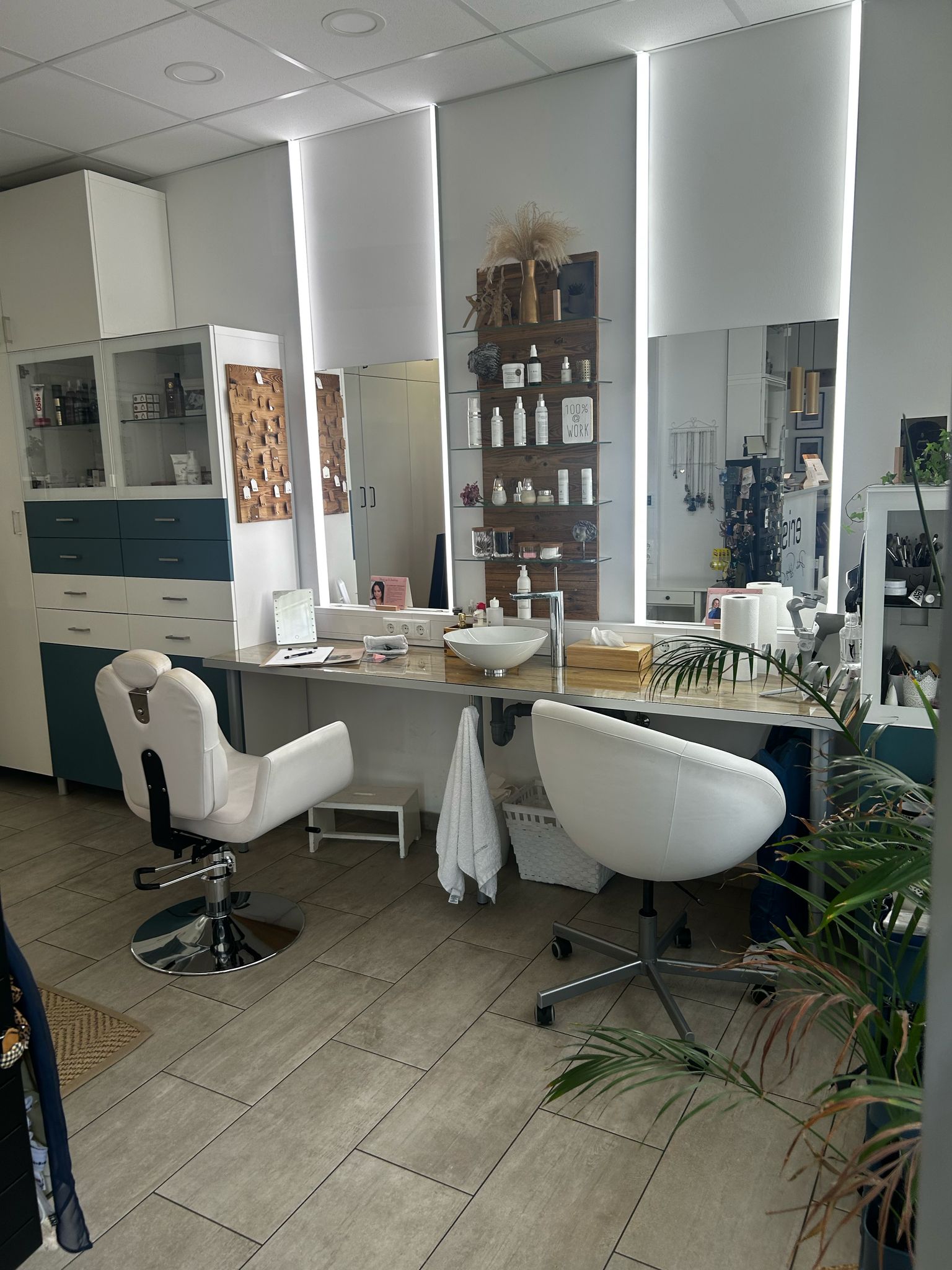 Unser Studio verfügt über zwei Schminkplätze für makelloses Styling, einen einladenden Besprechungsbereich für inspirierende Gespräche, Coachings und Workshops sowie eine voll ausgestattete Küche für kulinarische Pausen.