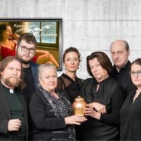 Vor dem Theaterpublikum als versammelter Trauergemeinde zerfleischt sich in diesem hochpointierten Stück schließlich die Führungsetage der Firma immer mehr. Nicht einmal der verzweifelte Pfarrer kann die Wogen glätten